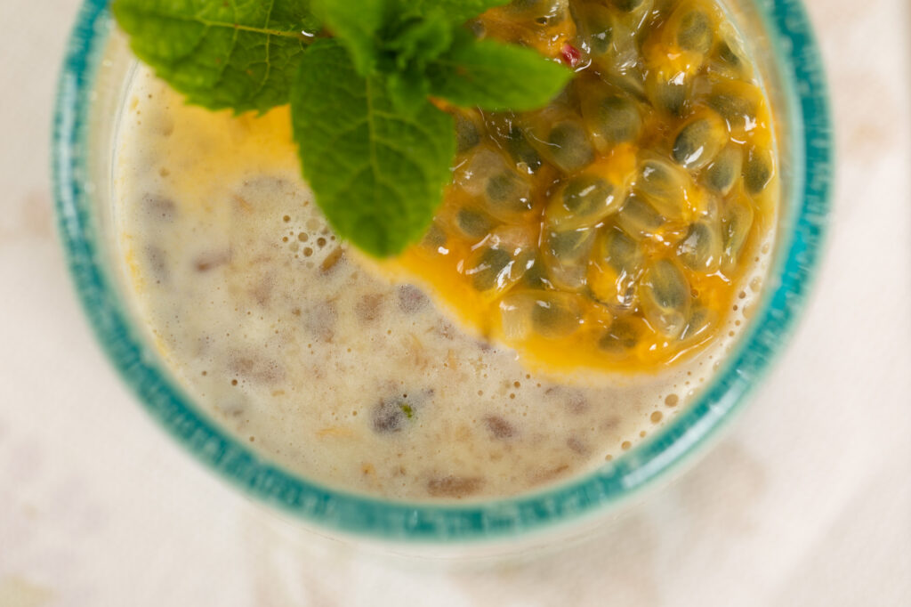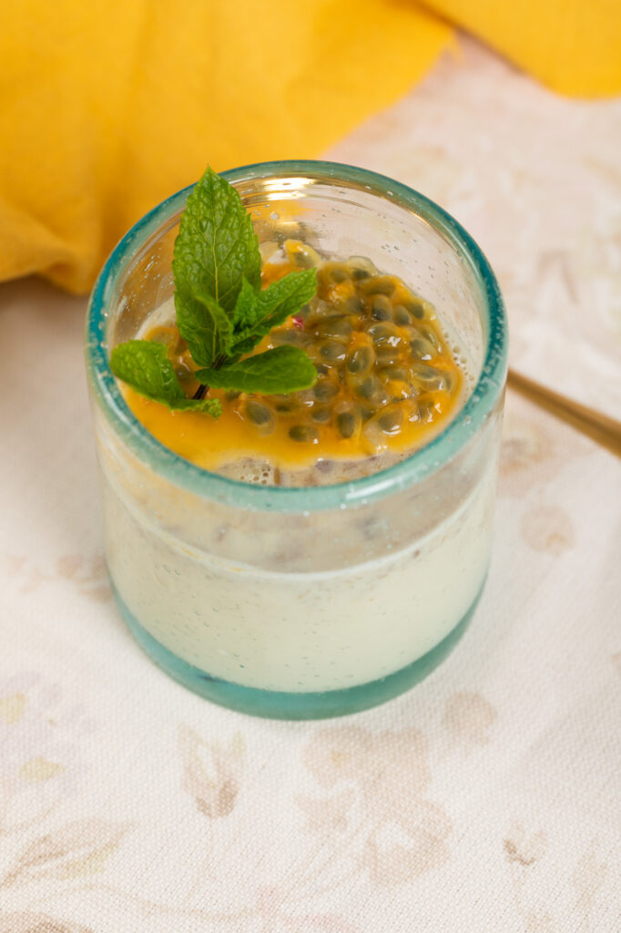 Vala saadud segu meelepärastesse klaasidesse/vormidesse ning aseta vähemalt 3 tunniks külmikusse. Serveeri koos kirevilja/passionviljaga. Passionfruidi hapukus ja panna cotta mõnus magusus on koos imeline pai maitsemeelele.