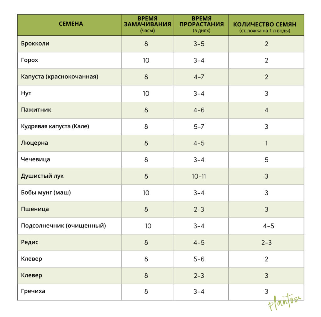 Мы составили таблицу, какое время замачивания семян для проращивания проростков. Это рекомендуемое время, основанное исключительно на нашем собственном опыте.