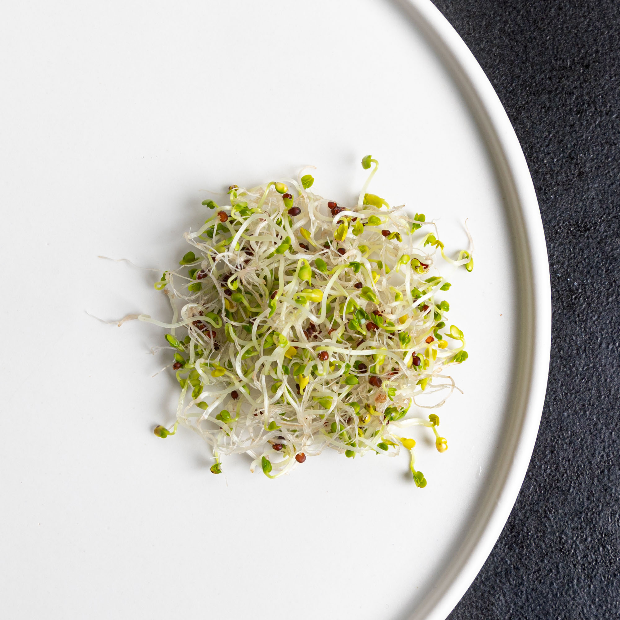 Benefits: broccoli microgreens contain glucoraphanin. Glucoraphanin is converted to sulforaphane (by the enzyme myrosinase), which has anticancer and anti-inflammatory properties. Broccoli microgreens are rich in fibers, which help fight constipation. This helps to maintain a healthy digestive tract and promotes regular digestion, which is crucial for the daily excretion of toxins with bile and feces. Eating srpouts promotes a healthy complexion and hair growth, provides increased energy, and may have a weight-loss effect. Just one cup of chopped broccoli provides 92 micrograms of vitamin K. This is well over 100% of the daily requirement, a sufficient amount of vitamin K improves bone health by improving calcium absorption.