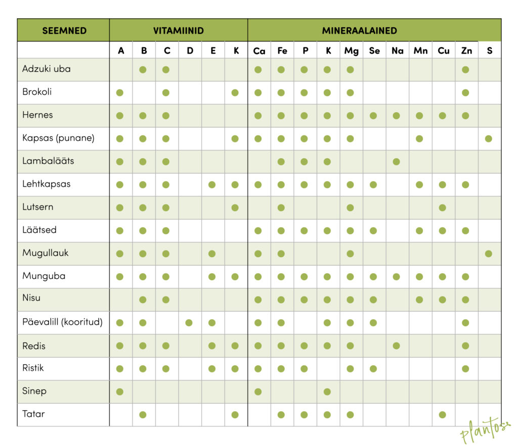 Plantose seemned on spetsiaalselt mõeldud idandamiseks (ja võrsete kasvatamiseks). Need on laboris testitud ja kontrollitud ning ei sisalda kolibakterit (E.coli) ega salmonellat. Idanemisspetsiifiliste seemnete kasvatajad hoolitsevad selle eest, et nende seemned oleksid väga puhtad – see tähendab, et need ei sisalda kahjulikke baktereid ega muid patogeene, mis võivad tärkamiskeskkonnas areneda. Kõik seemned meie poes on tunnustatud lisaks EU mahemärgiga.