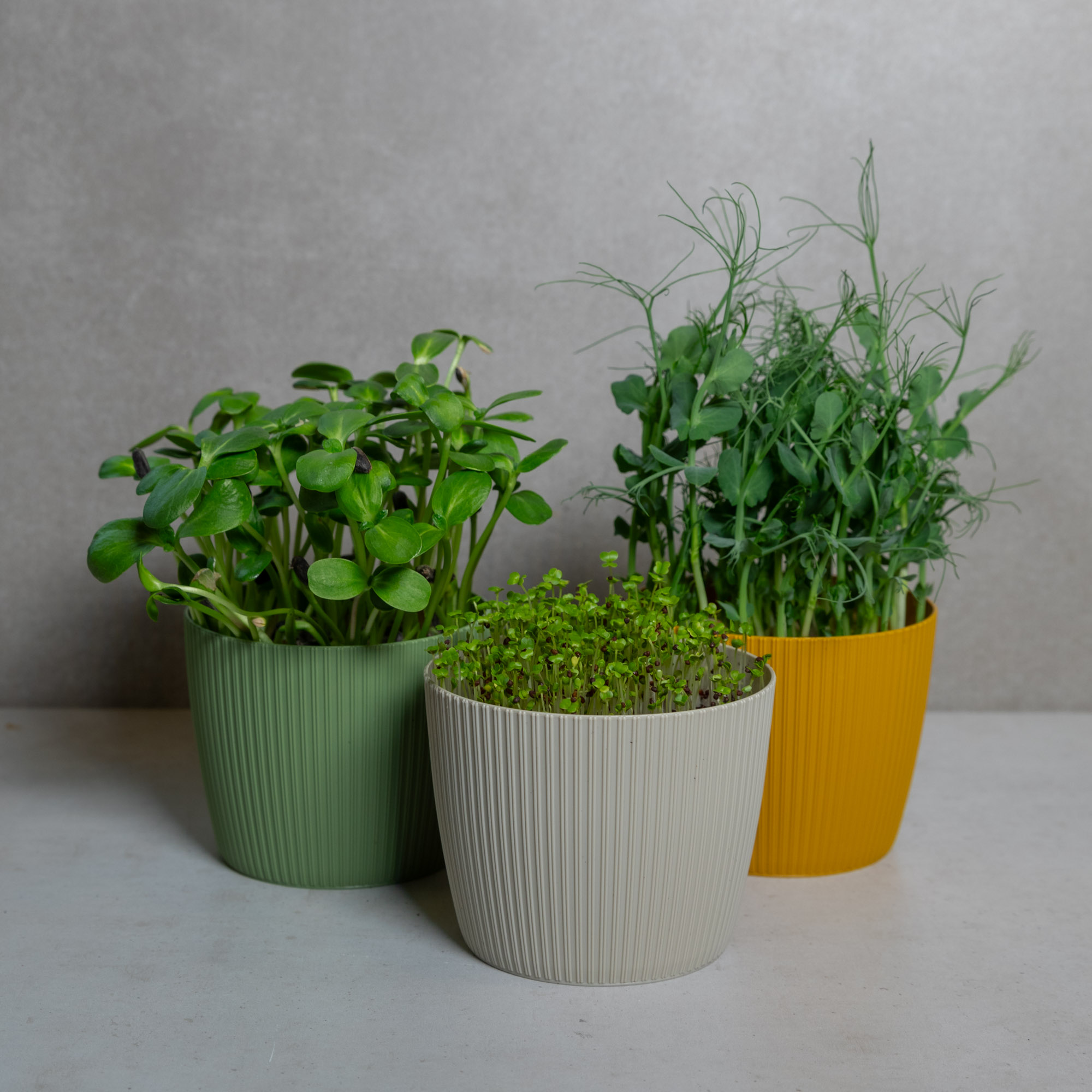 • 3 värvilist kasvatuspotti (pastelsed toonid või erksamad toonid)